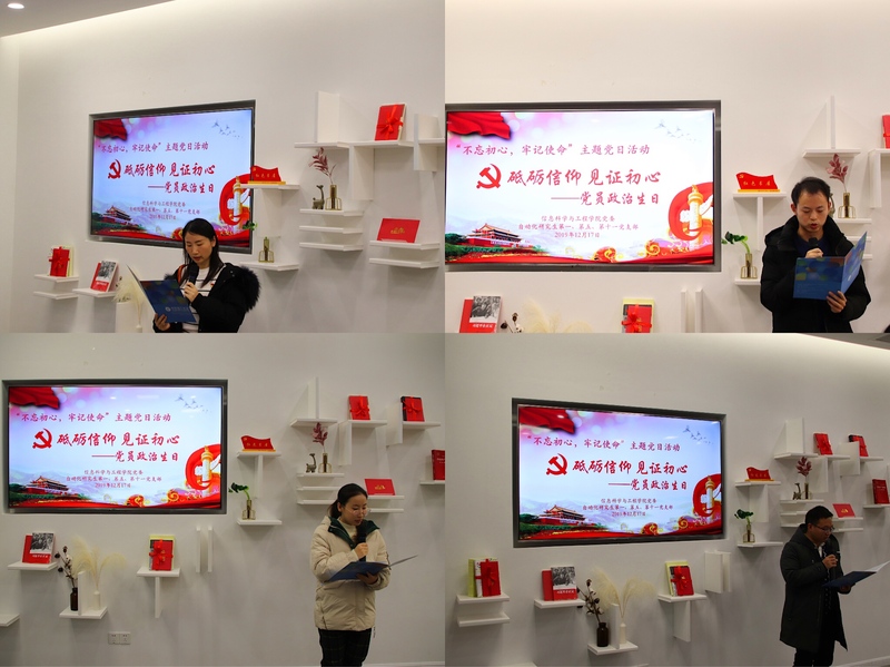 不驰于空想,不骛于虚声。主题党日活动过程中,三个支部中党龄十年、五年、两年以及刚刚入党的四位党员分享了各自的入党初心和成长历程。张丽娜分享了自己在党组织关爱下从研究生毕业成为一名大学老师再到如今继续攻读博士学位,不断提升自己,完善自己的成长故事;陈孟申回顾了自己的入党初心和在支部帮助下不断成长、不断进步的点点滴滴,表示将继续努力,力争做一名优秀党员;李倩玉对在党组织中受到优秀党员的帮助和启迪做了感谢,表示将传承这份精神,积极努力,强化服务奉献意识;黄鹏飞作为一名刚入党的新党员,结合自己在积极追求进步、加入党组织过程中的收获和体会,阐述自己的入党初心,表示将坚定理想信念,践行为人民服务宗旨,积极发挥党员先锋模范带头作用。支部其他党员也结合自身成长,分享了感想和体会。
