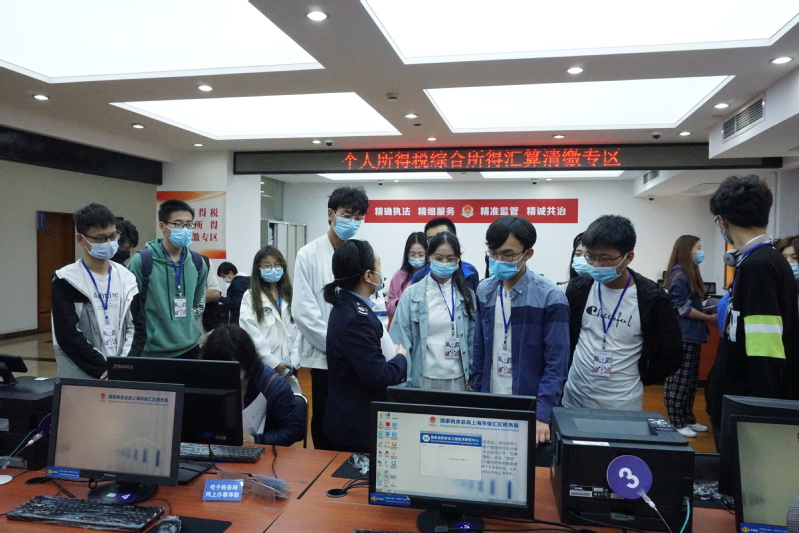伟德国际1946师生一行首先在徐汇区税务局办税服务厅负责人带领下参观了办税窗口及自助办税体验区,听取关于该局概况信息、窗口功能设置及各项办税缴费服务举措的介绍,并体验了自然人电子税务局相关功能,切实感受信息化办税的便捷高效。