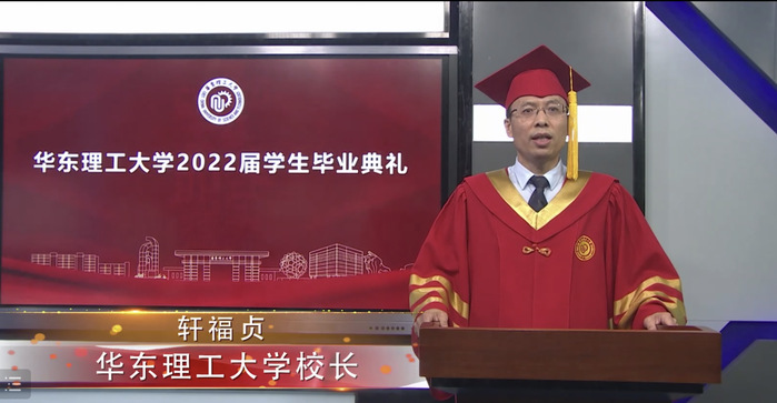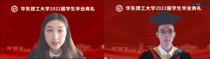 毕业生代表发言环节,本科生代表张珂璇向曾经教导、陪伴、帮助自己的老师、亲友、同学和在疫情期间全力保障学习生活的各界人士表达了诚挚感谢,并立志在奋斗中服务社会,在拼搏中历练成长,在实践中砥砺前行,成为母校的骄傲。研究生代表卢伟鹏回首了九年奋斗拼搏的华理求员工涯,表达了对母校的眷恋与感激之情,并表示作为国之未来的青年,要奋发图强,笃行不怠,不负家庭,不负社会,不负国家和人民。