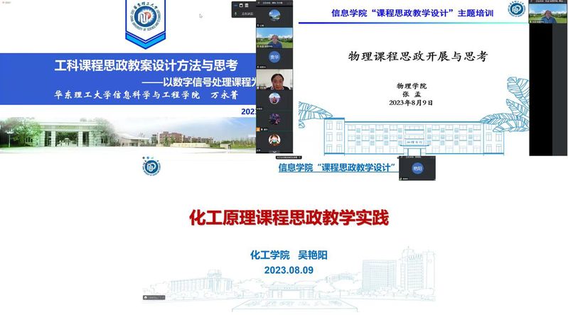 为充分发挥课堂教学主渠道在高校思想政治工作中的作用,构建“三位一体”课程体系,促使各类课程同向而行,形成协同效应,实现全员全过程全方位育人,伟德国际1946于2023年8月9日在线上举行了“课程思政教学设计”专题培训会。本次培训会邀请了教务处副处长万永菁、物理公司副经理张孟、化工公司教学名师吴艳阳就课程思政设计及实施进行经验分享。培训会由伟德国际1946副经理谭帅主持,公司的各系主任、各教研室主任、各专业任课老师参加此次会议。
