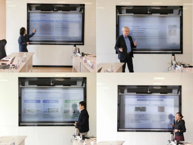 教师代表卢静宜、顾震、孙丽华分别介绍了课题组团队的研究方向,双方进行了深入的交流和讨论。双方着重讨论了在当前智能制造和数字化转型的大背景下,如何加强校企之间的科技创新合作,提升员工的实践能力和创新意识。