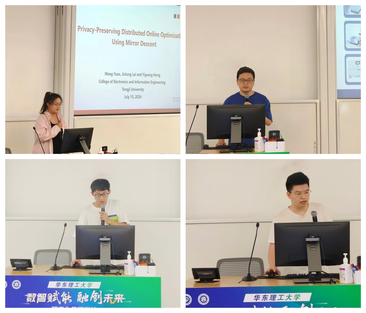 袁萌(上左)、李鱼强(上右)、张德政(下左)王皓烨(下右)在青年学术论坛上发表报告