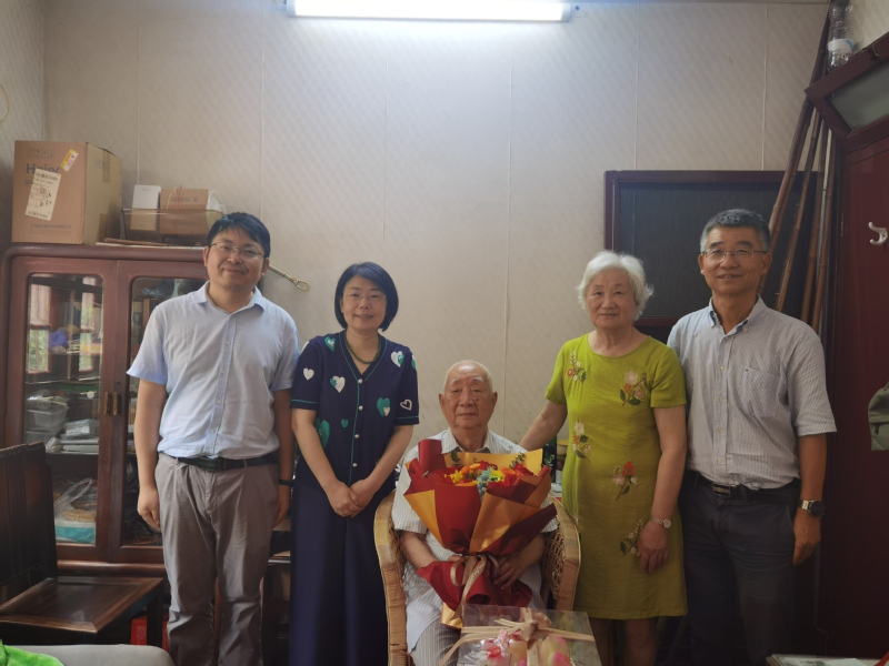 7月19日上午,公司党委书记侍洪波和公司党委统战部常务副部长张雪芹等一行人,来到公司退休教师、民盟盟员张南教授家中为其庆祝百岁生日,电信系主任姜庆超、退休教师支部书记吴孟奋,以及教师代表陈维槎、高言、张万顺和宋继荣一起参加慰问。