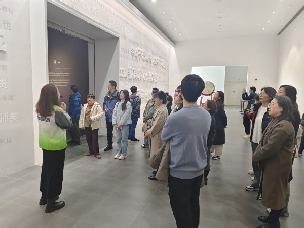 随后,大家来到闵行博物馆参观。作为上海市爱国主义教育基地和全国科普教育基地,闵行博物馆位于闵行文化公园西南角,建筑围绕“与城市文化融合、与自然共生”的建设理念而成,博物馆建筑面积15000余平方米。在讲解员的带领下,首先参观了《子曰——孔子主题文物展》。该文物展共包括“夫子时代”、“寻迹千年”与“圣人智慧”三大主题单元,通过孔子燕居像、明代圣迹图等共计107件(套)精选文物,引领大家穿越千年时光,近距离感受孔子文化与精神的独特魅力。